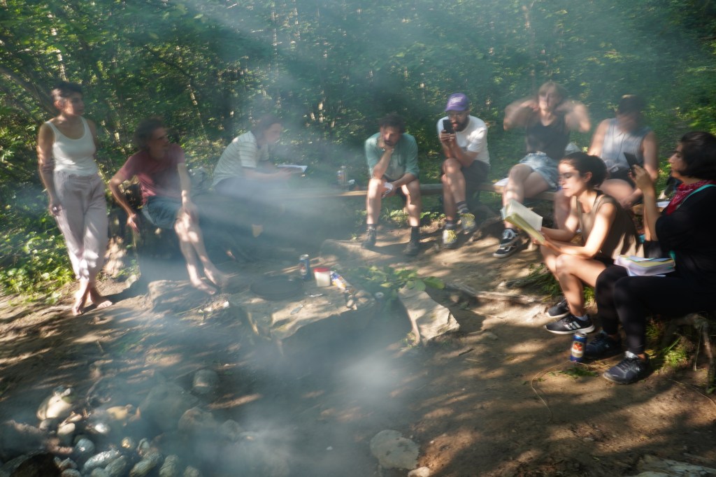 Según el artículo Terror, transición, refugio: los bosques en la literatura occidental de la revista digital de las Bibliotecas de Vilareal, el bosque aparece en la literatura occidental de tres maneras: como espacio de terror, como espacio de transición y como refugio. En la primera participación que llevé a cabo, mientras la artista Paloma Ayala nos cocinaba en un fuego con forma de silueta humana, las lecturas se orientaron a pensar formas de vincularnos con el bosque que no tuvieran que ver con la explotación y el extractivismo, sino en ver en el bosque un lugar en el que somos bienvenidos y del que podemos aprender.