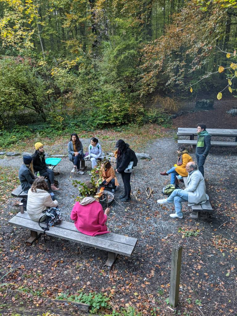 En círculo compartimos las lecturas de bosques que reciben a nuevos habitantes, esconden los misteriosos micelios, y son lugares de transmisión de aprendizajes entre madres e hijas, abuelas y nietas, quienes recogen plantas medicinales o tallan animales en viejos troncos.