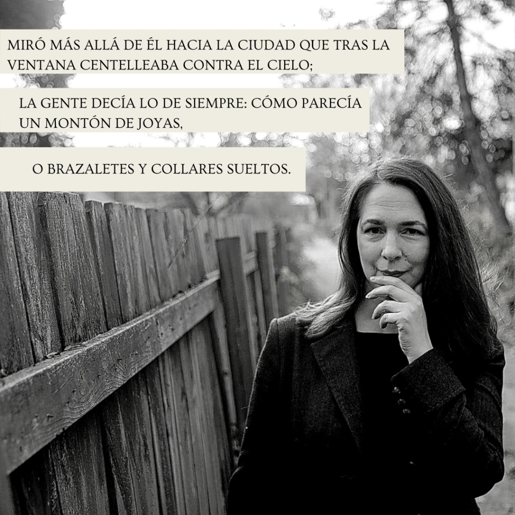 «Lo infrecuente de esos paseos los convertía en acontecimientos destacados en su vida. El simple acto de salir de la quietud monástica de la tienda y acceder a la algarabía de las calles la llenaba de una leve emoción que acababa adquiriendo demasiada intensidad para poder ser disfrutada al verse inmersa en el fragor arrollador de Broadway o de la Tercera Avenida, cuando empezaba a entablar una tímida batalla con aquellas corrientes incesantes y enfrentadas de seres humanos.»
