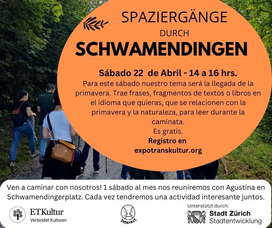 Fuimos al bosque cercano a Schamendingen, en Zürichberg, e hicimos varias paradas para compartir nuestras lecturas sobre la primavera. Escuchamos poesía, cuentos, frases y canciones en español, holandés e italiano, con traducción espontánea en alemán e inglés. Un paseo muy especial lleno de lecturas y escucha.