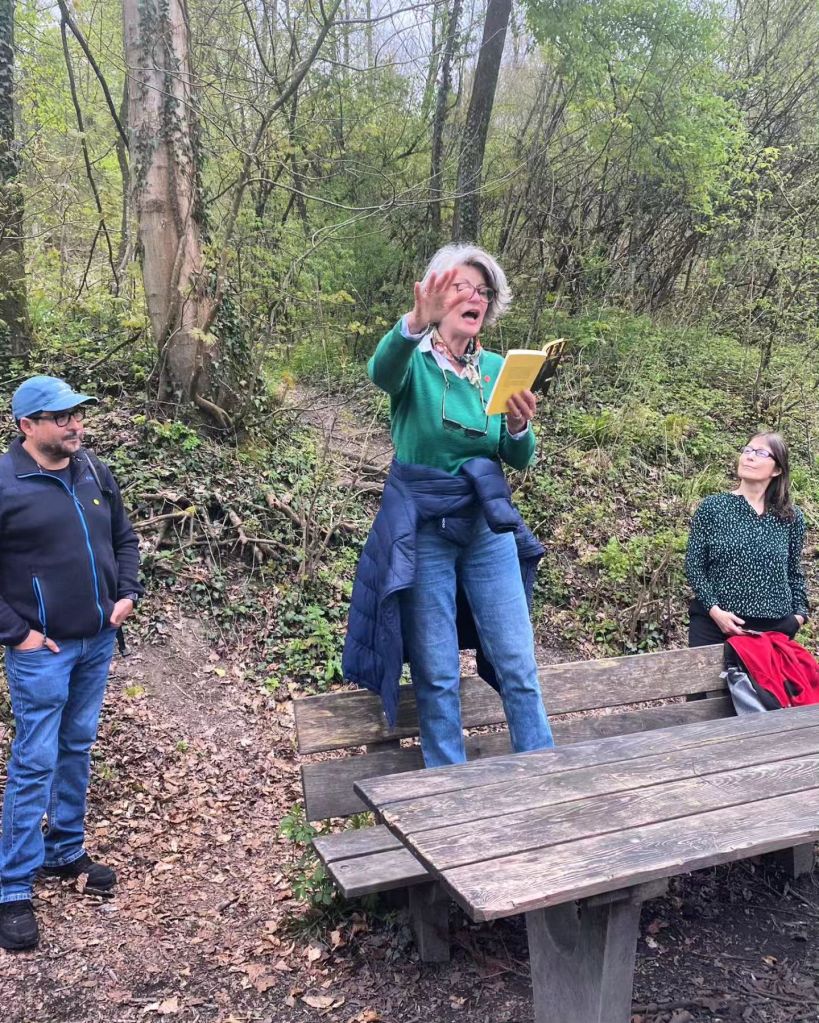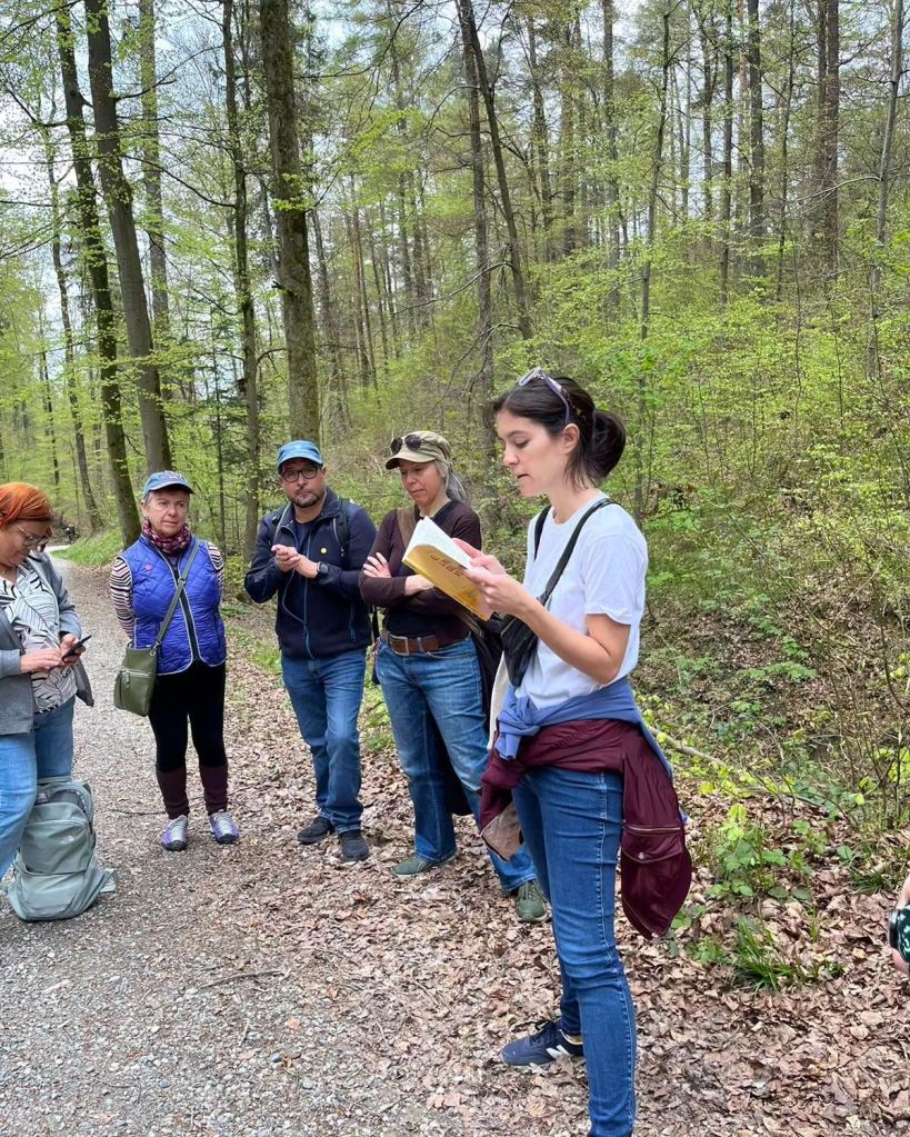 Wir sind in den Wald bei Schamendingen auf dem Zürichberg gelaufen und haben mehrere Stopps gemacht, um unsere Lektüre über den Frühling zu teilen. Wir haben Gedichte, Geschichten, Sätze und Lieder auf Spanisch, Niederländisch und Italienisch, mit spontaner Übersetzung auf Deutsch und Englisch gehört. Ein ganz besonderer Spaziergang voller Lesungen und Zuhören.