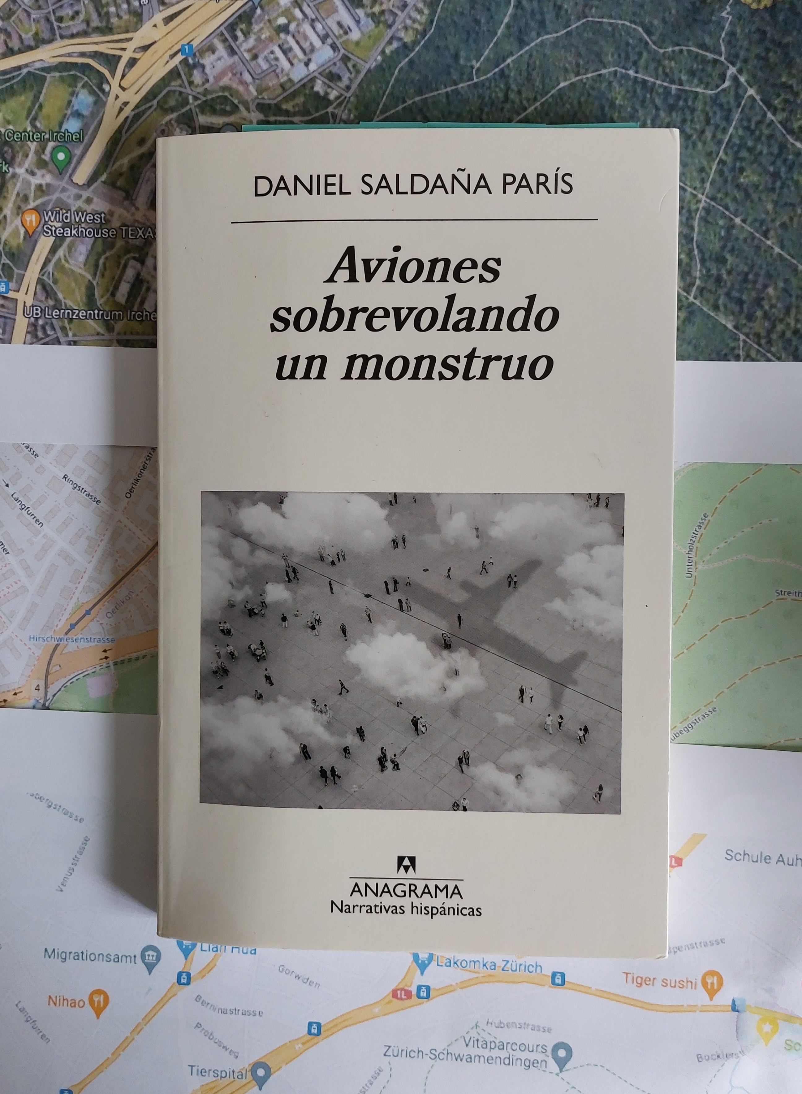 La ciudad monstruosa que se sobrevuela es la Ciudad de México. Esta es mirada aéreamente con una mezcla de amor y odio, así como los aviones son mirados desde la ciudad en encuentros en las azoteas de amigos cerca del Aeropuerto Benito Juárez bajo el influjo de sustancias varias.