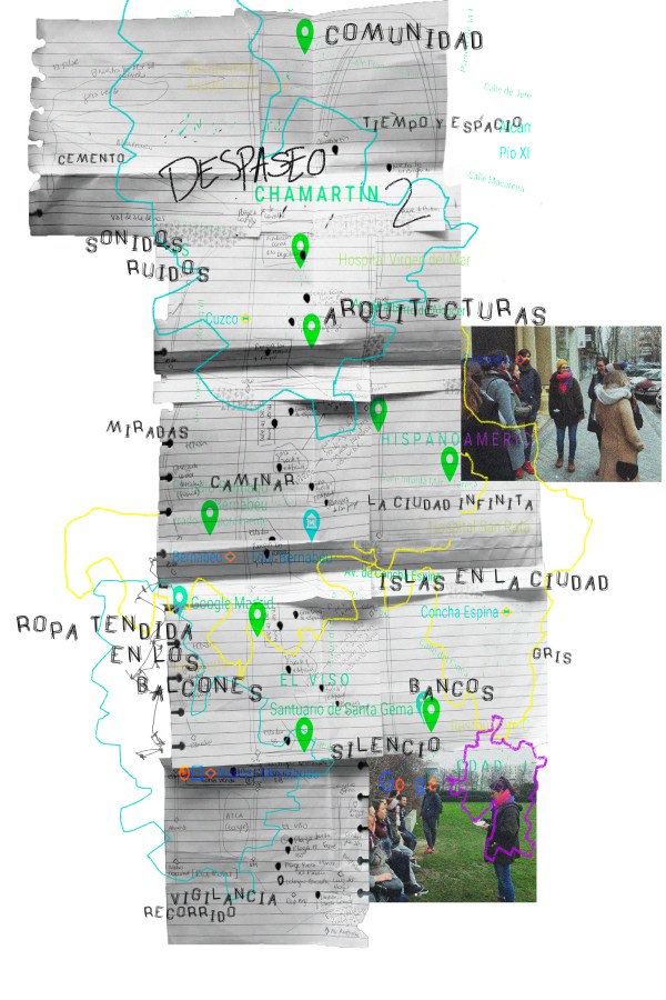 Este Despaseo cuenta con un registro gráfico hecho por Ana García López, colaboradora en la organización y registro. En él, sobre el mapa y las paradas del recorrido realizado, se encuentran las palabras que resonaron durante el paseo así como el trazo de nuestro trayecto. Debajo de este, encuentran el registro-relato. Nos encontramos en la... Leer más →